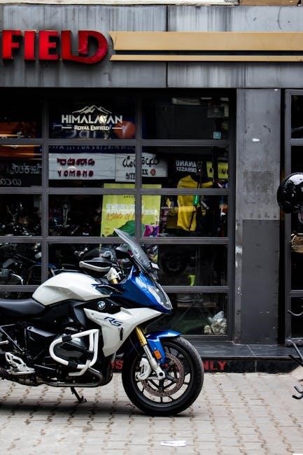 Regular checks of the battery terminals, wiring connections, and fuses are recommended to prevent electrical issues. The manual provides troubleshooting guides for common electrical problems, such as faulty lights or ignition malfunctions, ensuring riders can address issues promptly and safely. Proper maintenance of the electrical system is crucial for maintaining the bike’s performance and reliability.